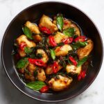 Experience the vibrant and authentic flavors of Thailand with this quick and easy Thai Basil Chicken recipe. Ready in just 30 minutes, this dish features juicy chicken thighs stir-fried with fragrant garlic, shallots, spicy red chili, and sweet bell peppers, all brought together with savory oyster and fish sauces and a generous handful of fresh Thai basil for a perfect balance of spice, sweetness, and umami.