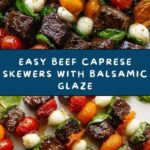 Beef Caprese Skewers combine tender grilled sirloin beef cubes with fresh cherry tomatoes, creamy mozzarella, and fragrant basil, all drizzled with a sweet balsamic glaze. This quick and flavorful appetizer is perfect for summer gatherings or a light dinner.