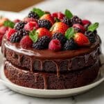 This Berry Chocolate Cake is a moist and rich chocolate layer cake infused with fresh mixed berries and topped with a luscious cocoa buttercream frosting. The recipe features a tender chocolate cake base made with cocoa powder and enhanced with sour cream for extra moisture, layered and decorated with a sweet and tangy fresh berry compote. Perfect for celebrations or a delightful dessert, this cake offers a harmonious balance between the deep chocolate flavor and the bright freshness of berries.