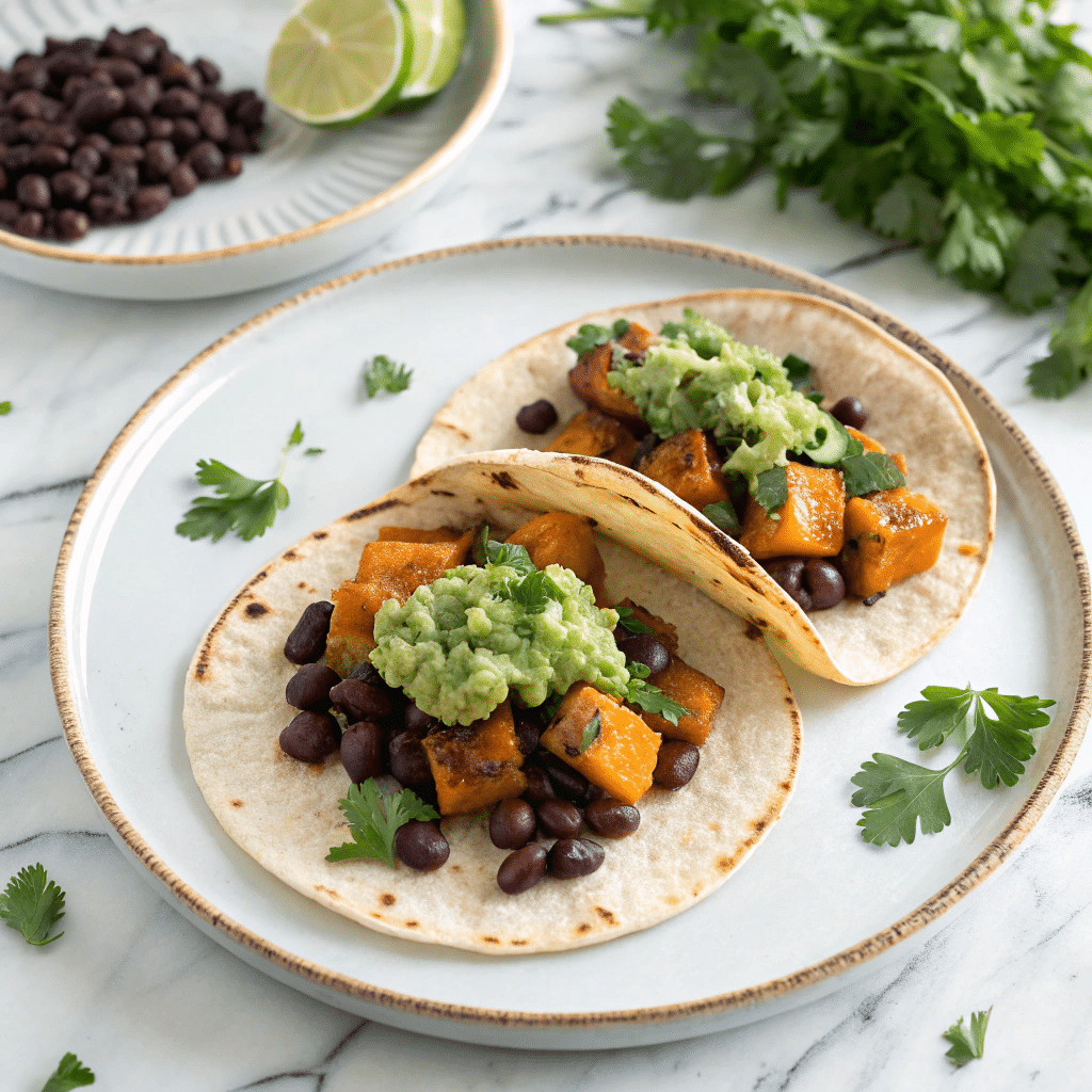 Serve the tacos immediately with extra lime wedges on the side to allow each diner to add just the right amount of citrus zing. The combination of roasted sweet potatoes, black beans, and fresh toppings will have everyone reaching for seconds.