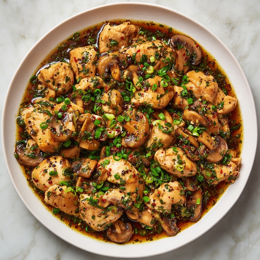 Try serving the chicken and mushrooms over a bed of buttered noodles for a comforting twist. Another idea is to plate it in individual shallow bowls with a sprinkle of toasted sesame seeds for a decorative finish that also adds delightful crunch and nuttiness.