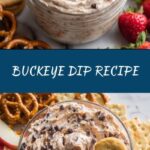 Buckeye Dip is a creamy, peanut butter and chocolate chip dessert dip inspired by the classic Buckeye candy. This no-cook, quick-to-make recipe combines smooth cream cheese, creamy peanut butter, and sweet powdered sugar folded with fluffy whipped topping and mini chocolate chips for a luscious treat perfect for parties or casual snacking. Serve with pretzels, graham crackers, apple slices, Nilla Wafers, or strawberries.