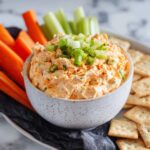 Garnishing your Buffalo Chicken Dip with some chopped green onions or fresh parsley adds a fresh, vibrant touch that brightens up the rich flavors. A drizzle of extra Buffalo sauce on top can turn up the heat and make it look just as appetizing as it tastes.