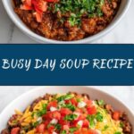 Busy Day Soup is a hearty and comforting meal perfect for quick preparation on any busy schedule. Made with ground beef or turkey, mixed vegetables, tomatoes, and beef broth, this soup simmers to a flavorful, satisfying dish that can be enjoyed on its own or paired with bread or crackers.