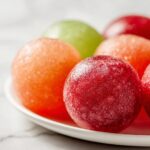 For a playful presentation, skewer the candy grapes on cocktail sticks with alternating pieces of fresh mint leaves or small cubes of cheese. You can also serve them in clear glass bowls to show off their sparkling candy shells—a feast for both eyes and palate!