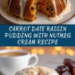 This Carrot Date Raisin Pudding with Nutmeg Cream is a moist and flavorful baked dessert combining the natural sweetness of dates and raisins with grated carrots spiced with cinnamon and nutmeg. It is topped with a luscious nutmeg-scented whipped cream, making it a comforting treat perfect for any season.