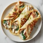 Cheesy Garlic Chicken Wraps are a delicious and quick meal option featuring shredded chicken, melted mozzarella, fresh spinach, and a hint of garlic, all wrapped in a warm flour tortilla and pan-cooked to a golden crisp.