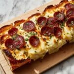 - Layer Pepperoni & Seasonings: Arrange 24 slices of pepperoni evenly on top of the cheese. Then sprinkle the grated Parmesan cheese, Italian seasoning, and garlic powder over the pepperoni for extra flavor.