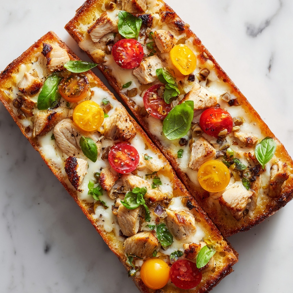 For a casual gathering, slice the Chicken Caprese Garlic Bread recipe into smaller finger-food pieces and arrange them on a rustic wooden board with fresh basil sprigs around. You could also serve it open-faced as a unique pizza alternative or stack the slices with extra chicken and basil for a creative sandwich twist. The presentation can be as simple or as festive as you like!