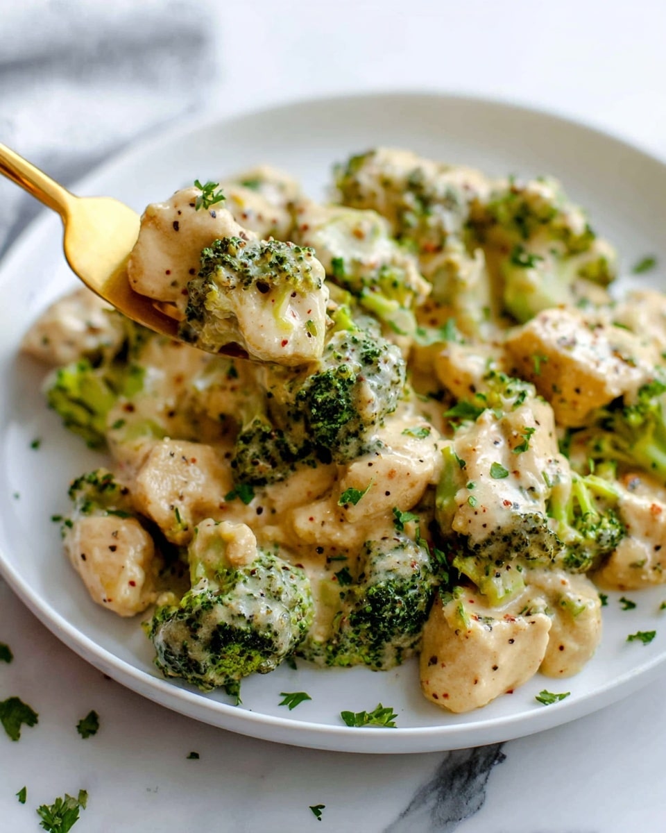 - Combine Ingredients: Gently fold the steamed broccoli and cubed cooked chicken into the cheese sauce, ensuring everything is evenly coated but not mashed.