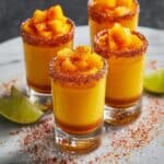 Chile Mango Mexican Candy Shots are a vibrant and bold party drink combining sweet mango nectar, tangy lime, and spicy chamoy with a Tajín-rimmed glass for a fun, flavorful kick. These easy-to-make shots are perfect for gatherings and celebrations, offering a bright, tropical taste with a spicy twist.