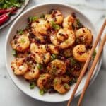 This Chinese Salt and Pepper Shrimp recipe features crispy, golden shrimp seasoned with aromatic Sichuan peppercorns, white pepper, garlic, ginger, and fresh chilies. Double-fried for extra crunch, the shrimp are tossed with fragrant spices and fresh scallions, delivering a spicy, savory dish perfect for an appetizer or main course.