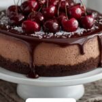 Chocolate Cherry Cheesecake is a decadent dessert that pairs the richness of creamy chocolate cheesecake with the sweet-tart flavor of cherry topping. Nestled in a crisp chocolate cookie crust and finished with a glossy cherry layer, this showstopping dessert is perfect for holidays, special occasions, or any time you’re craving a luxurious treat.