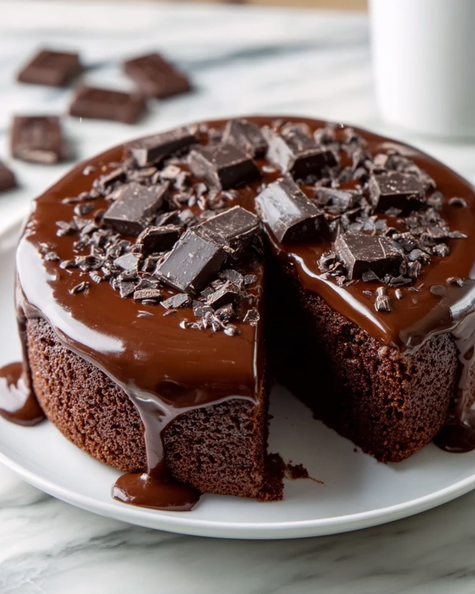 This cake pairs wonderfully with a scoop of vanilla ice cream or a drizzle of caramel sauce. You can also serve it alongside a hot cup of coffee or rich, creamy hot chocolate for a true chocolate lover’s dream experience.
