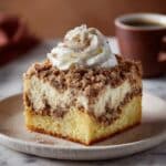 This Cinnamon Pecan Coffee Cake is a moist, tender cake layered with a cinnamon-pecan filling and topped with a buttery drizzle that caramelizes during baking, creating a crisp, flavorful crust. Perfect for breakfast, brunch, or a cozy coffee break, this cake pairs wonderfully with a cup of coffee or a dollop of whipped cream.