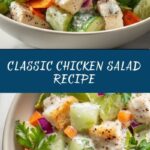 This Classic Chicken Salad is a quick and easy recipe perfect for a light lunch or a picnic. Made with tender cooked chicken, creamy mayonnaise, and tangy Greek yogurt, it’s accented by fresh celery, onion, and dill for a refreshing crunch. Optional nuts add extra texture, making this salad both satisfying and flavorful.