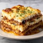 A sprinkle of freshly chopped parsley or a few mint leaves brightens the rich layers while adding a fresh herbal note. For an extra touch, a light dusting of additional grated cheese or a little cracked black pepper on top right before serving can elevate the presentation and flavor.