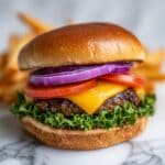 These ingredients are straightforward and essential, each playing a key role in creating a burger that’s juicy, well-seasoned, and packed with classic flavors. From the perfectly seasoned ground beef to the fresh, crisp veggies and soft buns, everything counts towards making the ultimate burger.