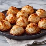 Deliciously chewy and sweet coconut macaroons made with shredded sweetened coconut, condensed milk, and egg whites. These easy-to-make treats are baked to golden perfection and can optionally be dipped in melted semisweet chocolate for an extra indulgent touch.