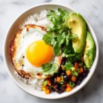 For a fun twist, try serving the rice and beans in a hollowed-out avocado half for an edible, Instagram-worthy presentation. Alternatively, plate the rice and beans in bowls topped with the fried egg and cilantro, letting each person mix their yolk in for an interactive dining experience.