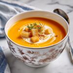 Carefully transfer the soup in batches to a blender or use an immersion blender directly in your pot. Blend until it reaches a silky smooth consistency that feels indulgent yet light. The beautiful orange hue is as inviting as the taste itself.