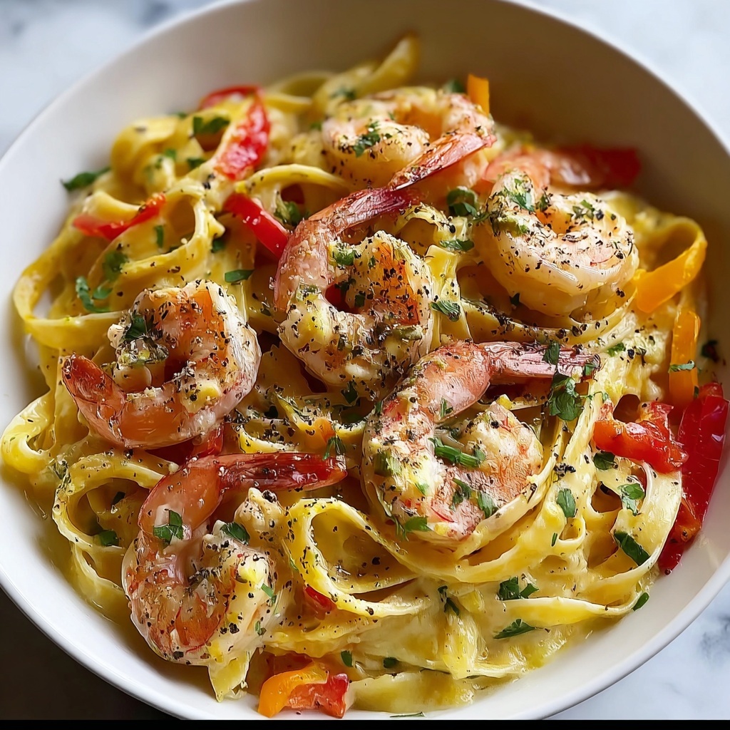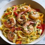 This Creamy Jamaican Shrimp Pasta is a vibrant and flavorful dish combining succulent shrimp sautéed with aromatic vegetables and jerk seasoning, all tossed in a rich, creamy coconut milk sauce. Perfectly paired with fettuccine or linguine, this quick and easy recipe infuses Caribbean zest into a comforting pasta meal for four in just 30 minutes.