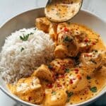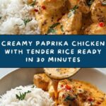 This Creamy Paprika Chicken with Tender Rice offers a rich and velvety sauce infused with smoky and sweet paprika, combining tender chicken pieces with a comforting bed of fluffy white rice. Ready in just 30 minutes, it’s a flavorful and satisfying dish perfect for a hearty family meal.