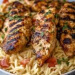 Serve this creamy Parmesan chicken and orzo recipe in shallow bowls for an inviting, rustic look or spoon it onto plates garnished with edible flowers or microgreens for a touch of elegance. You can also try plating the orzo first and layering the chicken on top as a centerpiece, making the meal look restaurant-worthy without the fuss.