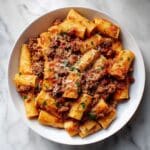 This Creamy Rigatoni with Boursin Cheese is a rich and comforting Italian-inspired pasta dish featuring tender rigatoni cooked in a flavorful sauce made from ground beef or Italian sausage, aromatic spices, marinara sauce, and creamy Garlic and Herb Boursin cheese. Perfect for a hearty weeknight dinner, this one-pot recipe comes together easily in under 30 minutes and is garnished with fresh parsley and parmesan for an extra burst of flavor.