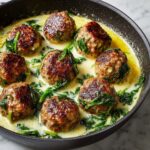 These Creamy Spinach Turkey Meatballs deliver a healthy and flavorful family-friendly meal with tender ground turkey combined with fresh spinach, Parmesan, and aromatic herbs, baked to juicy perfection and served in a rich, creamy garlic sauce. This recipe balances wholesome ingredients with comforting creaminess for an easy weeknight feast.