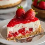 This Creamy Strawberry Cheesecake combines a buttery graham cracker crust with a rich, smooth cream cheese filling folded with whipped cream and fresh strawberries, creating a light yet indulgent dessert. Perfectly chilled and optionally topped with a shiny strawberry glaze, this no-bake cheesecake is an easy and elegant treat for any occasion.