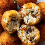 This classic Arancini recipe offers crispy, golden-fried rice balls stuffed with gooey Gruyère cheese, a perfect appetizer or snack. Made with creamy mushroom and vegetable risotto, these Italian delights are coated in breadcrumbs and fried to perfection, served with fresh parsley and marinara sauce for dipping.