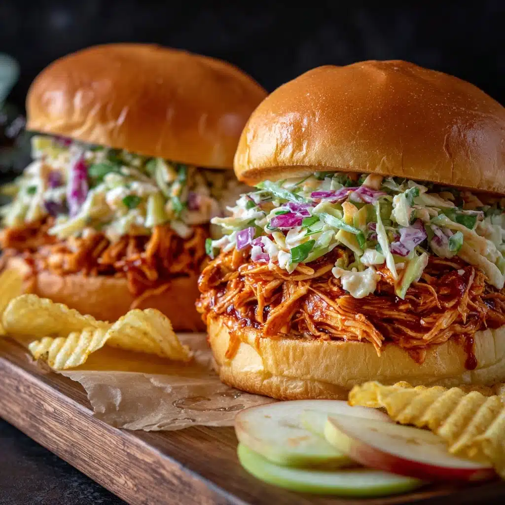Brighten up your Crockpot BBQ Pulled Chicken Recipe with a scattering of fresh chopped parsley or green onions for a pop of color and freshness. If you’re serving sandwiches, a crisp heap of coleslaw on top not only looks beautiful but adds a delightful crunch and creamy contrast to the tender chicken.