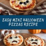 Presentation is key with this fun recipe! Arrange the mini pizzas on a large platter decorated with faux spider webs or mini pumpkins for that ultimate Halloween vibe. You can even serve them on a wooden board with orange and black napkins to elevate the holiday spirit for guests of all ages.