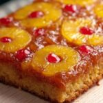 - Cool and Invert: Once baked, let the cake cool in the pan for about 10 minutes to allow the caramel to set slightly. Then carefully invert the cake onto a serving platter so the pineapple slices are on top, and serve warm or at room temperature.