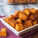 - Roast Sweet Potatoes: Roast in the preheated oven for 25-30 minutes, flipping the cubes halfway through the cooking time. Roast until the edges turn golden and crispy, and the insides become tender.