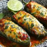 This Chile Relleno recipe features roasted poblano peppers stuffed with melted Monterey Jack cheese, battered in a fluffy egg batter, and fried to a golden perfection. Served with a vibrant homemade salsa roja, this classic Mexican dish offers a satisfying combination of smoky, cheesy, and spicy flavors ideal for a flavorful meal.