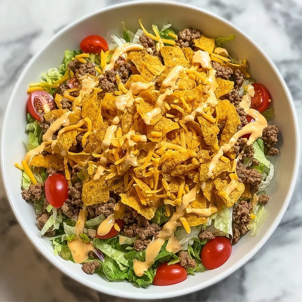 For the best texture contrast, fold in the Fritos whole so they keep their satisfying crunch. If you prefer smaller bites, give them a gentle crush before adding.