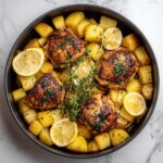 This Greek Lemon Chicken & Potatoes recipe offers a vibrant, flavorful dish featuring tender bone-in chicken thighs or drumsticks and perfectly roasted Yukon gold or baby potatoes. Marinated in a zesty blend of fresh lemon juice, olive oil, garlic, and oregano, then roasted to golden perfection with lemon slices, this classic Mediterranean meal is simple to prepare and bursting with bright citrus and herb flavors.