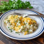 This Green Chile Chicken Enchilada Casserole is a comforting and flavorful one-dish meal featuring shredded chicken, rice, and a creamy green chile enchilada sauce, all topped with melted pepper jack and cheddar cheese. It combines a smooth, seasoned sauce with tender chicken and rice for a hearty and satisfying casserole perfect for family dinners or gatherings.