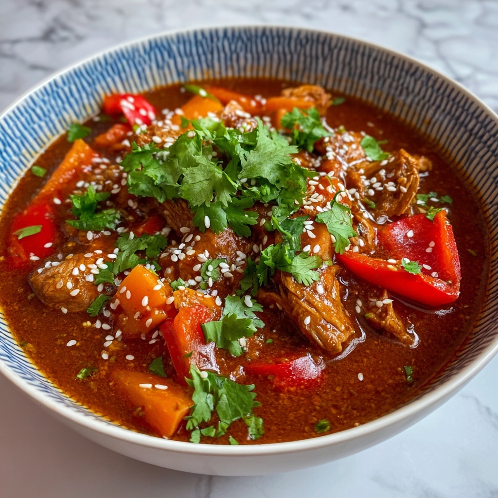 This Guatemalan Spiced Chicken Stew with Seeds is a hearty and flavorful dish featuring tender chicken thighs simmered in a richly spiced tomato broth with aromatic herbs and a delightful texture boost from pumpkin seeds. Perfectly seasoned with cumin, paprika, and oregano, this stew delivers a comforting and authentic taste of Guatemalan cuisine. Serve it hot alongside rice or warm tortillas for a satisfying meal.