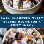 5. Serve and Enjoy: Transfer the completed Halloween Muddy Buddies to a festive bowl or platter and serve immediately. Enjoy this fun and delicious treat perfect for Halloween parties or as a seasonal snack.