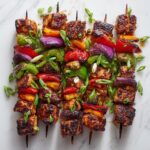 Brighten your plate by sprinkling chopped fresh cilantro or green onions over the kabobs right before serving. A wedge of lime on the side adds a pop of acidity and freshness that pairs beautifully with the grilled sweetness.