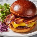 These Honey Dijon Chicken Cutlet Sandwiches are a delightful blend of tender grilled chicken breast marinated in a sweet and tangy honey Dijon sauce, topped with melted Swiss cheese, crispy bacon, and fresh lettuce and tomato slices. Served on soft pretzel buns or whole grain hamburger buns, these sandwiches bring a perfect balance of flavors and textures ideal for a quick, satisfying meal.