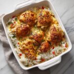 This Italian Chicken Rice Casserole is a comforting and flavorful one-pan meal combining tender bone-in chicken thighs, long-grain rice, fresh vegetables, and savory Italian seasonings. Baked to perfection in the oven, it melds juicy chicken, aromatic garlic and bell peppers, and rich diced tomatoes topped with melted mozzarella cheese, making it an ideal family-friendly dinner.