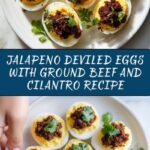 These Jalapeno Deviled Eggs with Beef offer a spicy and savory twist on the classic appetizer. By combining creamy deviled egg filling with flavorful seasoned ground beef and a touch of fresh cilantro, this recipe delivers a delightful bite-sized treat perfect for parties, potlucks, or anytime you crave a protein-packed snack with a kick.