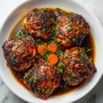 This authentic Jamaican Jerk Chicken recipe features bone-in chicken thighs and drumsticks marinated in a vibrant blend of Scotch bonnet peppers, aromatic spices, and fresh herbs. Grilled to perfection, the chicken boasts a smoky, spicy, and slightly sweet flavor that highlights Caribbean cuisine. Perfect for a flavorful main course, it pairs wonderfully with traditional sides like rice and peas or fried plantains.