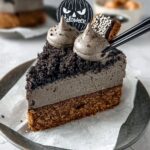 This Japanese Black Sesame Halloween Cheesecake offers a unique, nutty flavor combined with a creamy texture and a crunchy graham cracker crust. Enhanced with black sesame paste and a touch of black sesame seeds for garnish, this festive dessert is perfect for Halloween celebrations. A subtle hint of food coloring can be added to bring seasonal color to this elegant and smooth cheesecake.