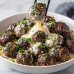 These Korean BBQ Meatballs are a flavorful and easy-to-make appetizer or main dish featuring juicy ground beef meatballs seasoned with garlic, parsley, and soy sauce, cooked to perfection in a skillet. They are served with a creamy, spicy mayo dip blended with sriracha and sesame oil, offering a delightful balance of savory and spicy flavors in just 35 minutes.