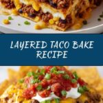 Layered Taco Bake is a delicious and easy-to-make Tex-Mex casserole featuring layers of refried beans, seasoned ground beef, salsa, crispy tortilla chips, and melted cheese, topped with sour cream and green onions. Perfect for a cozy family dinner or casual get-together, this dish combines flavorful ingredients baked to perfection in just 40 minutes.